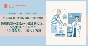 - 空気清浄機・空間除菌機の法的境界線:医療機器か家電かの該非判定と、安全性エビデンスを「企業防衛」に変える実務空気清浄機や除菌機は医療機器か、家電(雑品)か?設計段階で安全性エビデンス(吸入毒性等)をデザインすることが、再設計コストや補助金返還リスクを防ぐ「最強の企業防衛」になります。技術者・開発責任者必読。