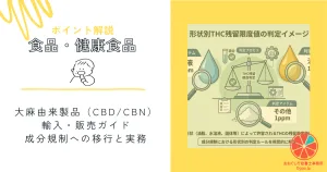 - 【2026年完全版】大麻由来製品(CBD/CBN)輸入・販売ガイド:成分規制への移行と実務2026年最新の大麻取締法・薬機法改正に対応したCBD事業者のための完全法務ガイド。部位規制からTHC成分規制への移行、CBNの指定薬物化、輸入時に不可避となるCOA精査とHPLCでは不十分な理由まで実務直結の知識を網羅しました。