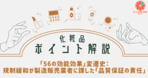 【化粧品ポイント解説】「56の効能効果」変遷史:規制緩和が製造販売業者に課した「品質保証の責任」新着!!