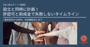 スムーズな事業開始は設立前の計画が全て。法人設立と許認可、助成金の申請を同時に進めるためのタイムラインを解説。よくある失敗例を参考に、事業計画段階から専門家と準備を進め、時間と費用を無駄にしない方法とは。