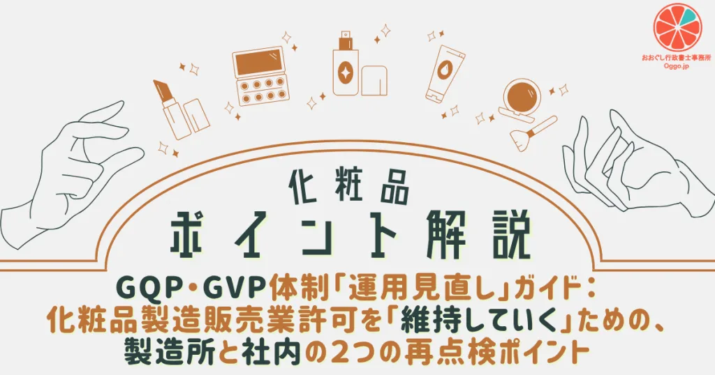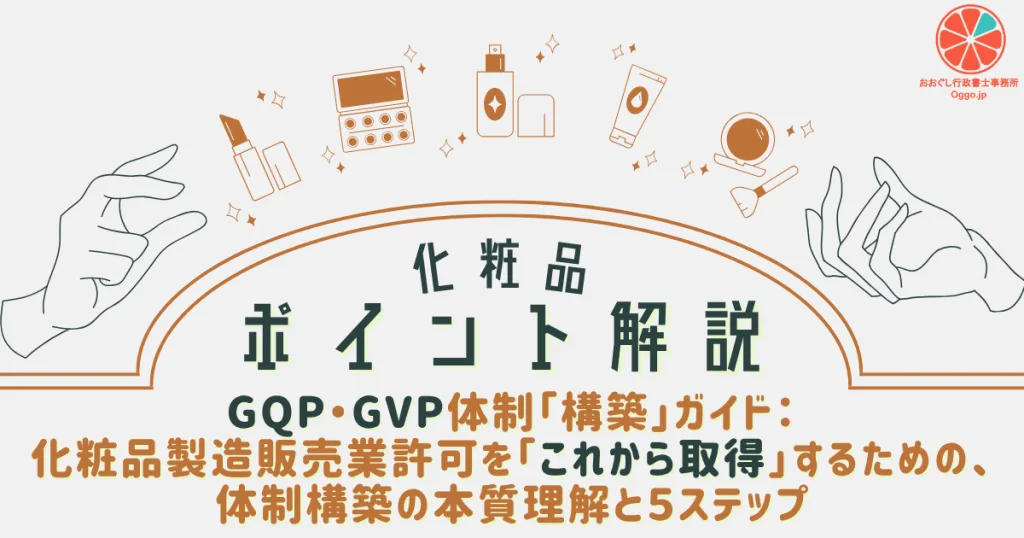 本記事では、化粧品製造販売業許可の全体像から、人的・物的要件、GQP/GVP体制の構築、申請手続き、そして許可取得後の運用に至るまで、事業者の皆様がスムーズに準備を進められるよう、各ステップをできるだけ網羅的に、そして分かりやすく解説します。