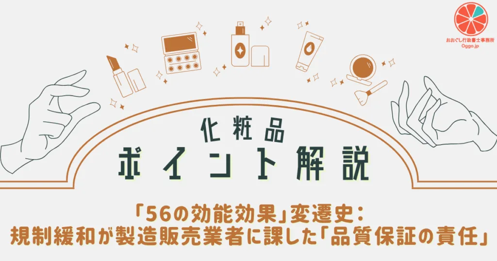 【化粧品ポイント解説】「56の効能効果」変遷史:規制緩和が製造販売業者に課した「品質保証の責任」