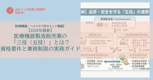 【2026年最新】医療機器製造販売業の要、三役(総括・品責・安責)と五役の役割・資格要件を徹底解説。第一種〜第三種で異なる「実務経験の年数」や「兼務制限」の罠を、薬機法改正後の最新通知に基づき図解。不備のない体制構築で許可取得を最短化する実務ガイドです。